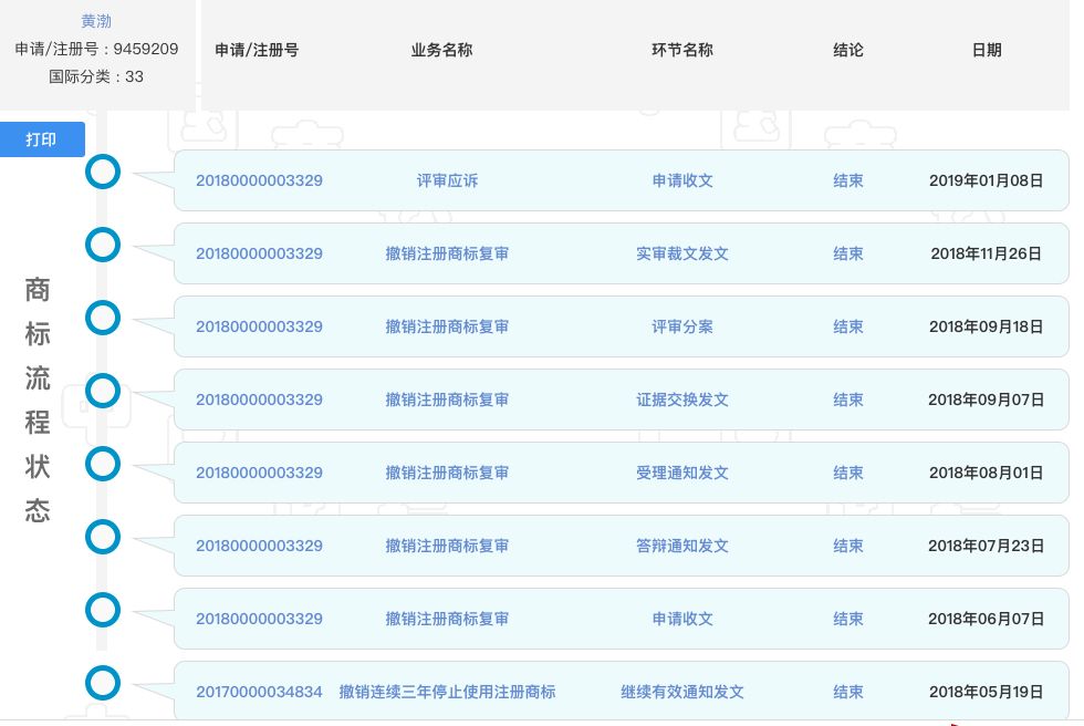 2018年的时候(商标局数据显示,实际申请日为2017年08月18日),演员黄渤对该商标提出了“撤销连续三年停止使用注册商标“申请,至于为什么是提出“撤销连续三年停止使用注册商标“申请。也许是经过调研,确定该第9459209号“黄渤”商标没有实际使用。那么就感觉把握很大。